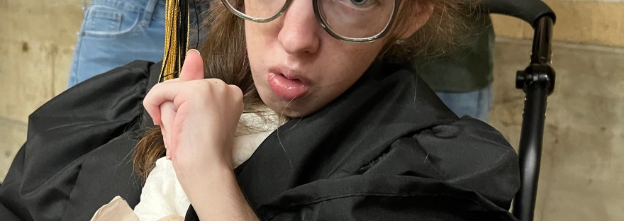 The school administration was wonderful in preparation for the graduation ceremony. They were accommodating, sensitive, and supportive of making sure Claire could participate as much as she was able. Claire’s nurse who attended all four years with her was four days away from her due date on graduation day, so we had the primary plan and the contingency plan. The baby was kind enough to hold off joining the world, so our nurse was able to walk with Claire.