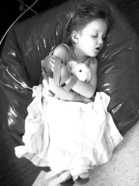 Thank goodness she’s sleeping now. It took a while and my arm is tired from patting her back, but she’s sleeping soundly. I can hear her breathing – which keeps me from getting up to check – and she’s been going strong for almost an hour. We’ve got the beginnings of a system to make it through the nights and we hope it diminishes volatility through the nights. It will help her stay strong for her therapy sessions.